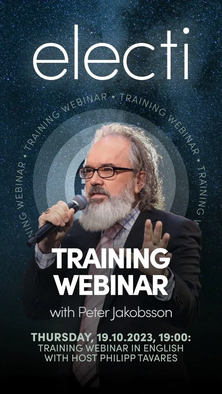 Join Master Distributors Bjorn Arnstedt and Peter Jurgenson, and USA Manager George Hoagland and our own favorite trainer Mr. David Dubbs. Join us to see a glimpse of the Electi Marketing App and how to optimize it. (Yes you can go to Apple or Play Store and search “Electi Mobile”) Learn how to get your Electi business off to a fast and solid start to create a firm foundation to create a legacy income.